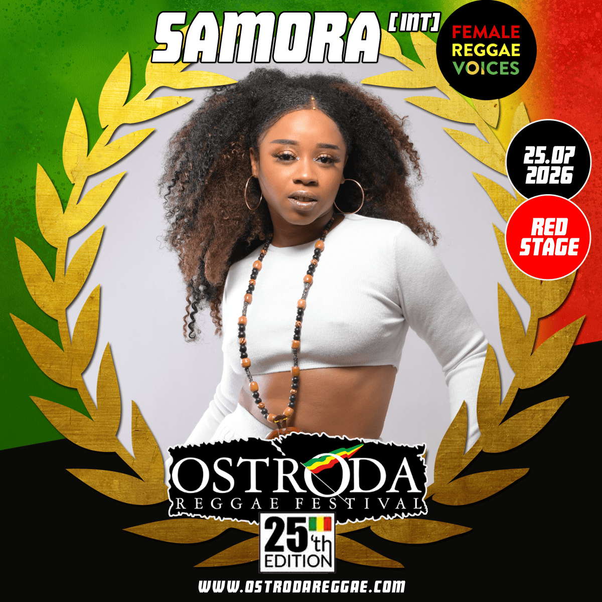 Samora (Holandia/Surinam) to wielokrotnie nagradzana wokalistka reggae, znana z potężnego głosu i urzekającej prezencji scenicznej. Jej występy na żywo są pełne energii i niezapomniane, wciągające publiczność od pierwszej zagranej nuty. Dzięki podnoszącym na duchu świadomym tekstom, jej muzyka inspiruje i łączy ludzi na całym świecie. Samora jest wschodzącą siłą na międzynarodowej scenie reggae.